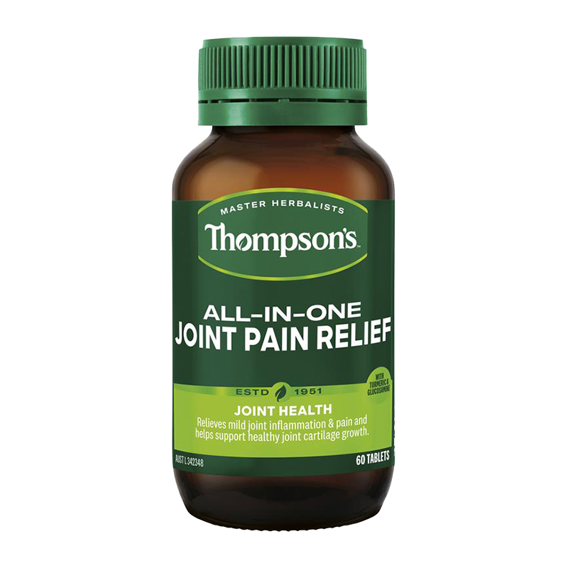Thompson’s All-In-One Joint Pain Relief combines Glucosamine with herbs and nutrients including Turmeric and Boswellia to reduce symptoms of mild arthritis/mild osteoarthritis:
