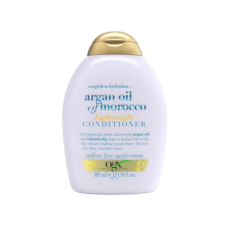Designed for fine hair, NEW OGX Weightless Hydration Argan Oil Lightweight conditioner is infused with moroccan argan oil helps to replenish and hydrate your hair…without weighing it down. This salon quality, sulfate free surfactant blend will help leave your hair feeling healthier, nourished and smooth.