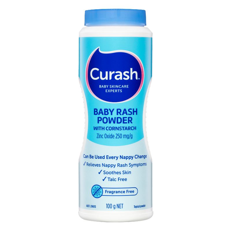 Curash Baby Rash Powder with Cornstarch is specially formulated to help relieve symptoms of nappy rash while soothing and calming delicate skin. Containing zinc oxide, it helps create a protective barrier on the skin while absorbing excess moisture. The talc-free and fragrance-free formula is suitable for use at every nappy change to help keep baby’s skin dry and comfortable.