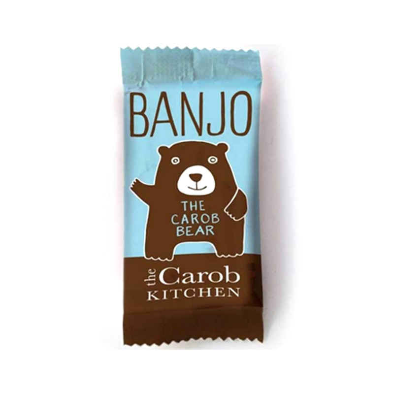 The Carob Kitchen Banjo The Carob Bear is made in Australia from natural ingredients. The certified organic bear has a chocolaty caramel taste as it is made from carob and cocoa butter. Free from gluten and added nasties, the bear is a safe sweet treat option for little ones and is rich in antioxidants, fibre and protein.