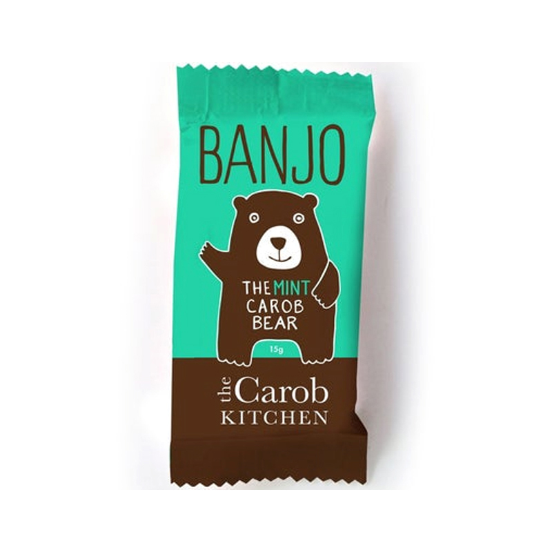 The Carob Kitchen Banjo The Mint Carob Bear is made in Australia from natural ingredients. The certified organic bear has a minty caramel taste as it contains carob and peppermint essential oil. Free from gluten and added nasties, the bear is a safe sweet treat option for little ones and is rich in antioxidants, fibre and protein.