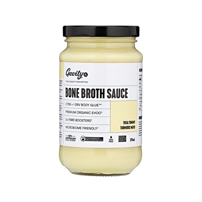 Not only is it made with Organic EVOO, Organic Psyllium Husk and Organic ACV, it’s packed with prebiotic fibre to feed your good gut bugs and supercharged with anti-inflammatory turmeric. Every 2 tablespoons of sauce contain a serve of Body Glue™ making it easier than ever to get the benefits of the World’s Most Nutrient Dense Bone Broth!