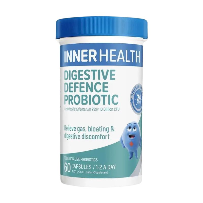 Inner Health Digestive Defence supports healthy digestion and maintains normal bowel function. Relieves bloating, wind and digestive discomfort. Inner Health Digestive Defence supports a healthy balance of good gut bacteria.