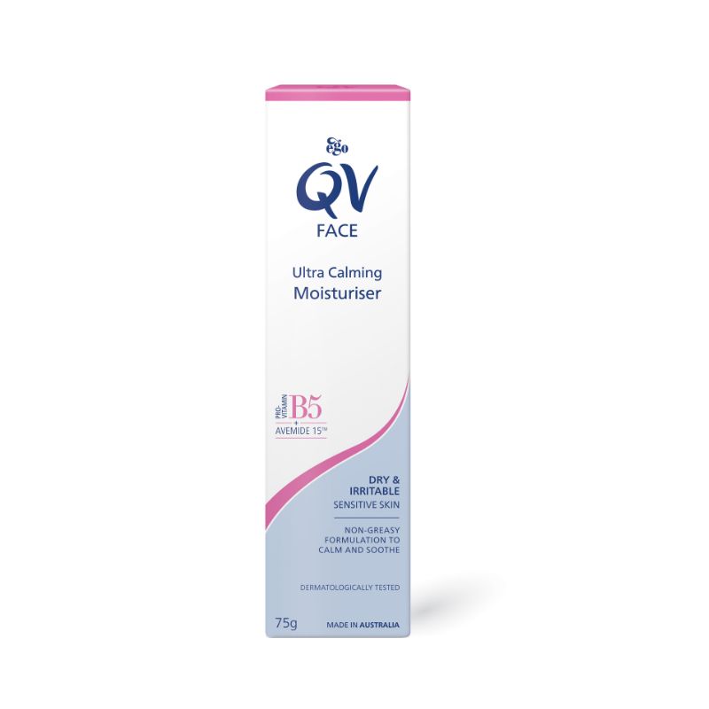 QV Face Ultra Calming Moisturiser is a daily moisturiser. Its non-greasy and lightweight formula is designed to calm & soothe irritated & sensitive skin. Use daily for 24 hour hydration to leave your skin feeling refreshed and hydrated. Also suitable for use under make up. Specially formulated for the sensitive skin of the face & neck. Contains a rich combination of ingredients to moisturise and provide 24hr hydration to the skin. Contains Vitamin E & Avemide15 – to reduce discomfort of sensitive skin irritation symptoms. Low-irritant formulation, fragrance, lanolin, propylene glycol and colour free. Non-comedogenic, so it won’t block pores. Dermatologically Tested.