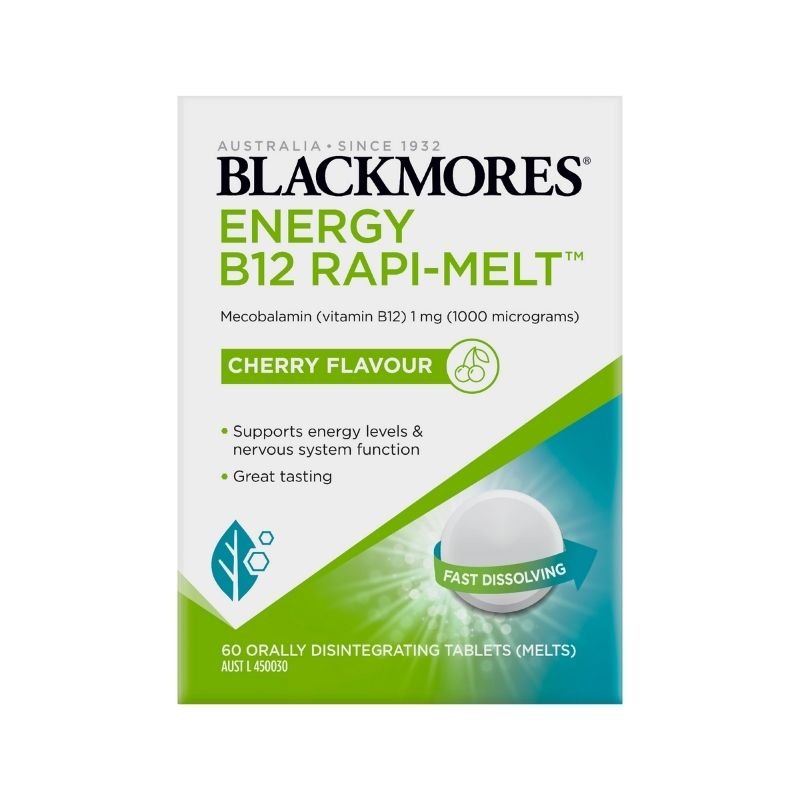 Blackmores Energy B12 Rapi-Melt is a fast dissolving and great tasting cherry flavoured melt which supports energy production and vitamin B12 levels within normal range. Formulated with 1000mcgs of B12 in a convenient one-a-day dose.