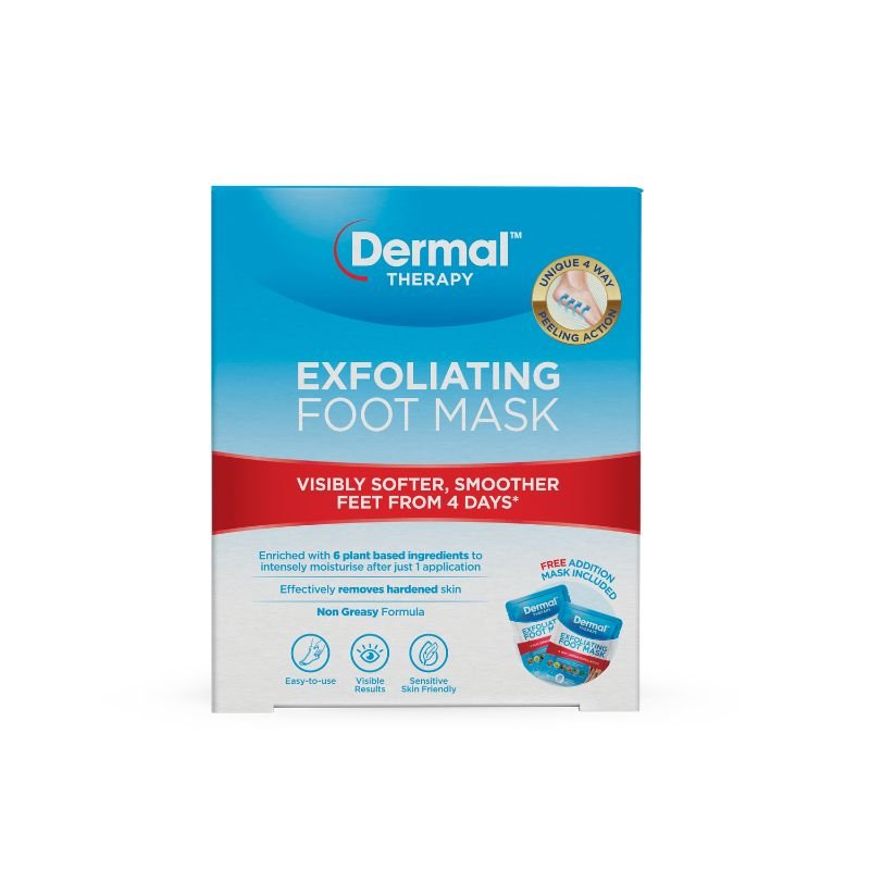 Dermal Therapy Exfoliating Foot Mask is a convenient foot sock designed with advanced exfoliation technology, combining urea and acids for exceptional effectiveness. Its unique blend of exfoliating agents ensures smart penetration, delivering visibly smoother feet in as little as 2 weeks and up to 3 weeks*. Enriched with 6 skin-conditioning agents, it helps soothe freshly exfoliated skin for optimal comfort.