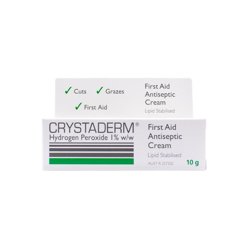 Crystaderm® is a preservative-free first aid antiseptic cream designed to help treat and prevent infection in minor cuts, wounds, and abrasions. Formulated with hydrogen peroxide, it effectively targets a wide range of bacteria, some fungi, and viruses by breaking down essential components of their cells, promoting a safer healing process.