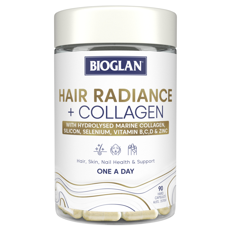 This unique 3-in-1 complex is formulated with Norwegian Hydrolysed Marine Collagen and enriched with Silicon, Selenium, Zinc and Vitamins B, C and D to provide nourishent to skin cells, hair follicles and nails. The formula supports the growth of hair, skin and nails while boosting collagen formation. Each capsule works to assist with the reduction of free radical damage to cell.