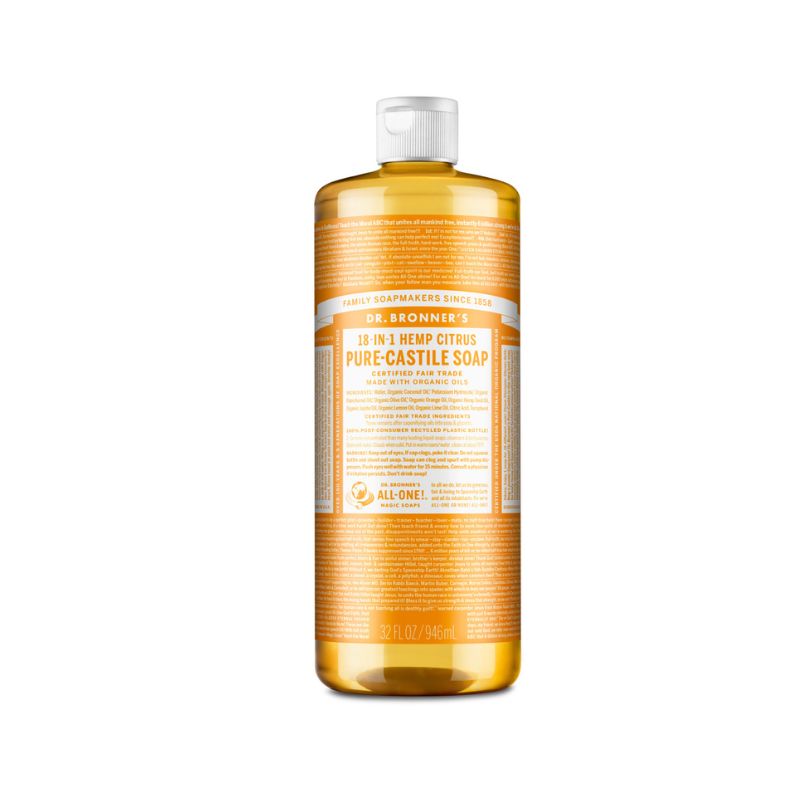Dr Bronner’s Hemp Citrus Orange Pure-Castile Soap is a versatile and cleansing product with 18 uses in just 1 bottle. Made from certified organic and fair trade ingredients, the soap is suitable for face, body, hair, food, dishes, laundry, mopping and pets. Simply dilute as needed and enjoy an all natural and environmentally conscious cleanse. Castile soaps are vegan friendly and derived from vegetables rather than animal fats. Dr Bronner’s Hemp Citrus Orange has sweet, zesty aroma and is sustainably produced with recycled packaging.