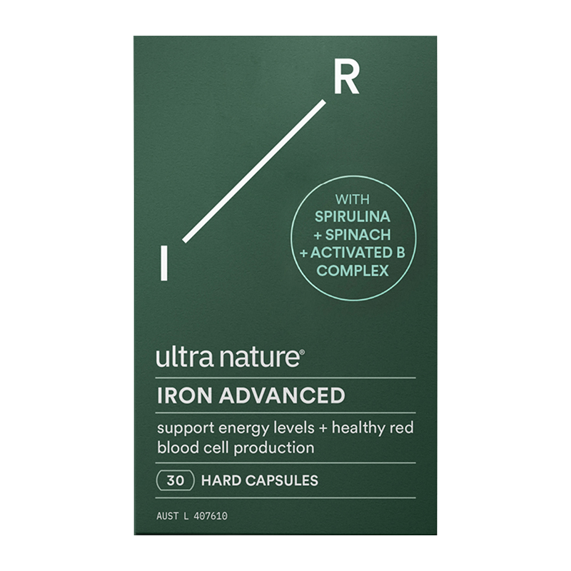 An all-natural iron supplement containing Vitamin C, Iron, Spirulina, Spinach + Activated B Complex Vitamins. Ultra Nature Iron Advanced: Helps Support energy levels. Helps support haemoglobin formation. Helps support transport of oxygen to body tissues. Maintain Iron levels in the body. Helps support cellular uptake of Iron. Helps prevent dietary Iron deficiency and helps enhance immune system function. Formulated and Made in Australia from Natural Ingredients.