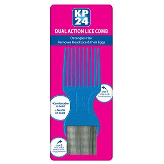 KP24 Dual Action Lice Comb is a strong fine-tooth metal comb used to remove head lice and their eggs from hair.