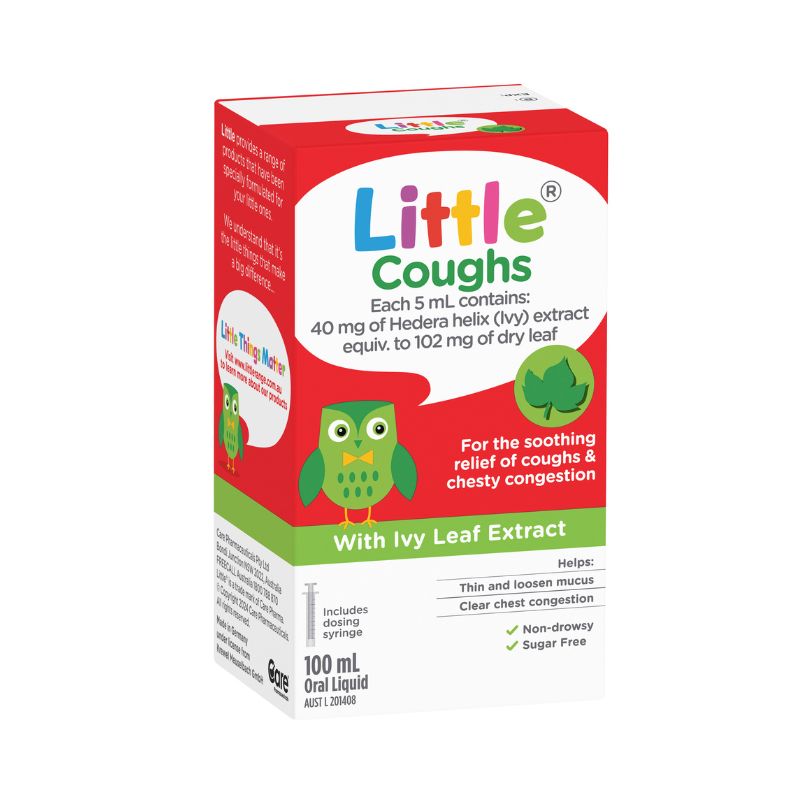 Little Coughs is a pleasant-tasting cough syrup based on an extract of ivy leaf, which acts as an expectorant. It helps to thin and loosen mucus, making it easier to clear the chest of congestion. Little Coughs gives soothing relief from coughs and respiratory congestion for the whole family and can be given to children from 6 months of age.