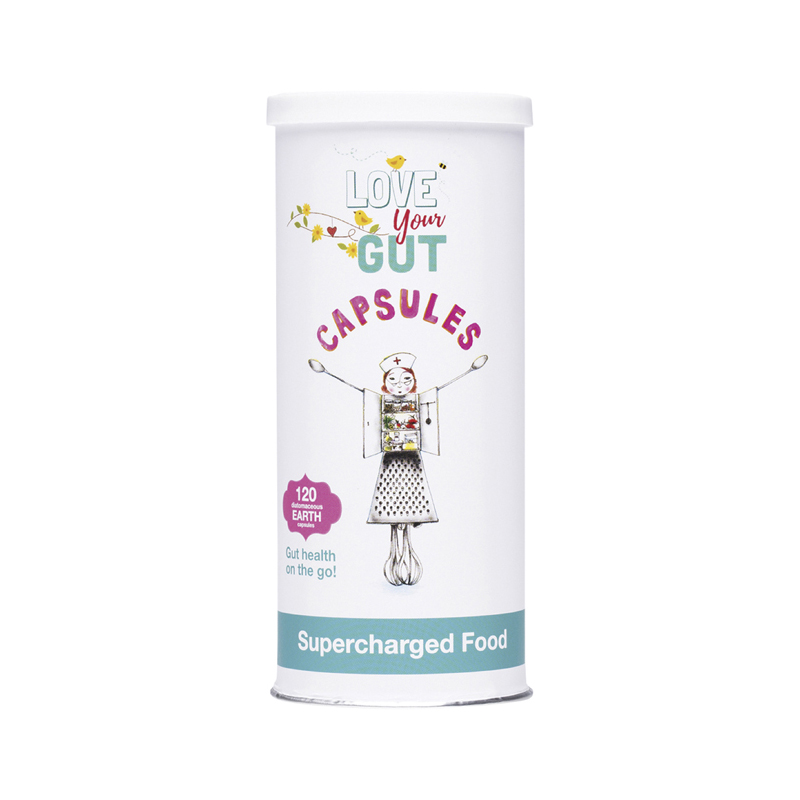Supercharged Food Love Your Gut capsules are made in Australia from organic amorphous silica, also known as fossil shell flour or diatomaceous earth. The vegan friendly capsules are free from gluten and may support digestive system health and waste removal.