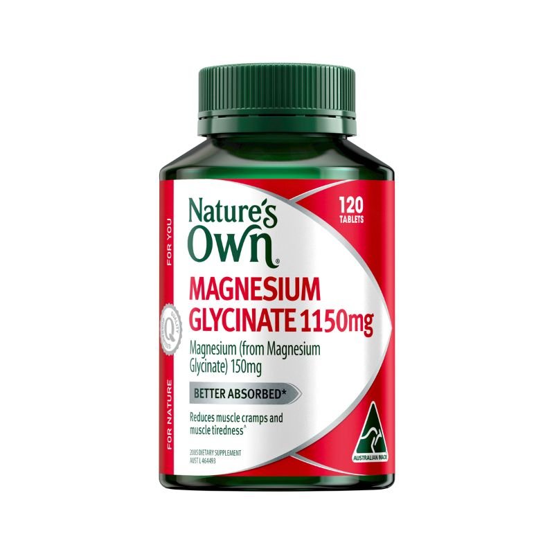 Nature’s Own Magnesium Glycinate 1150mg features a better-absorbed form of magnesium that helps reduce muscle cramps and tiredness, when dietary intake is inadequate. It also supports vitality and energy production.