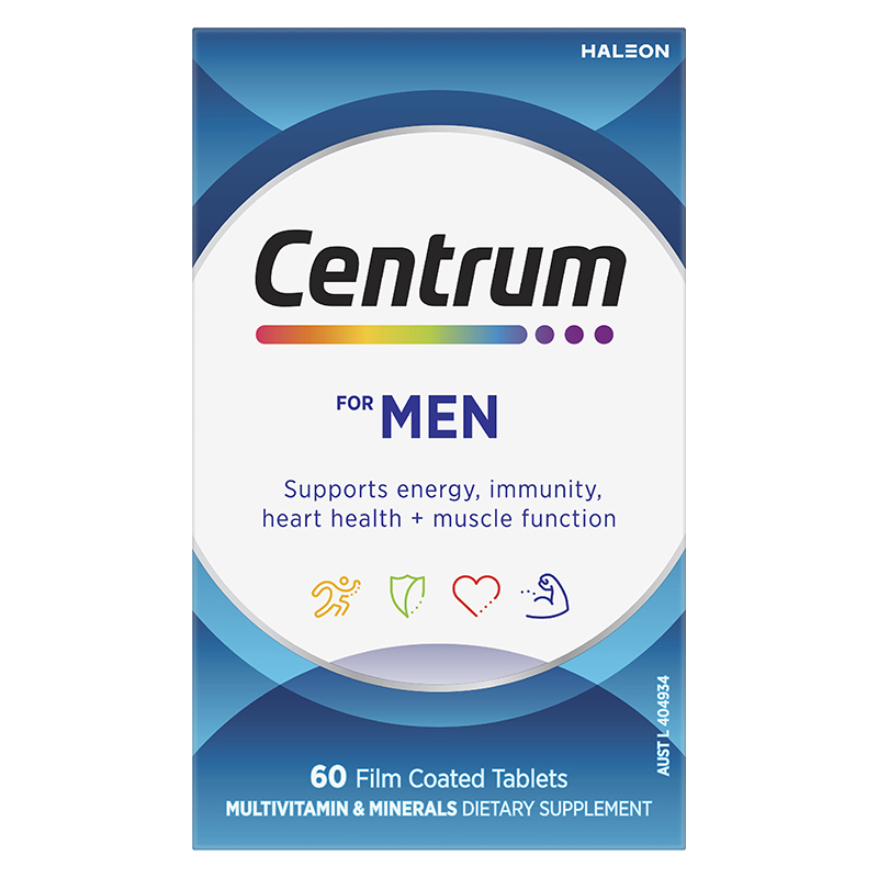 While there’s no one size fits all approach to living a healthy lifestyle, we know that focusing on our nutrition and eating well for your body can help you to stay energised and nourished. Vitamins and supplements can help to complement the nutrients you get from food and bring you one step closer to your health and wellness goals. Centrum For Men is designed specifically for men and contains multiple vitamins to help fill nutritional gaps supporting multiple health benefits.