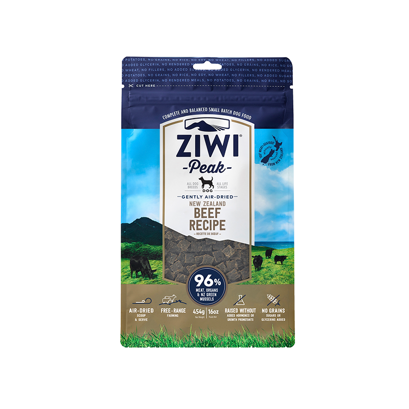 Ziwi Peak produce high quality pet food with simple, clean ingredients. This gently air-dried beef recipe dog food includes 96% free-range grass fed beef, organs and NZ green mussels that are free from GMO, antibiotics, growth promotants, grains, sugars and glycerins. What’s not to love?
