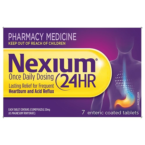 Nexium 24HR 20mg esomeprazole tablets are for the lasting symptomatic relief of frequent heartburn, acid regurgitation and other symptoms associated with gastro-oesophageal reflux.
