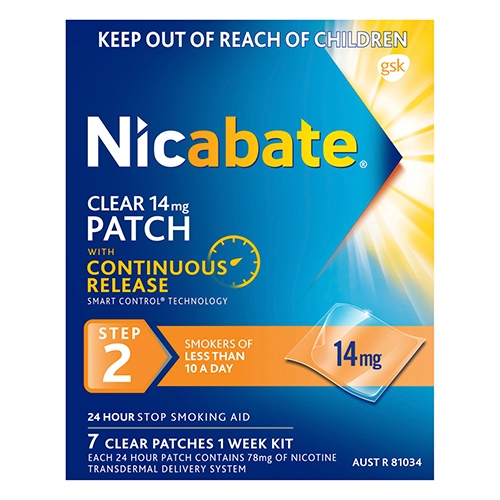 Please read the enclosed leaflet for more detailed information on directions for use. Nicabate Clear Patch is part of a programme designed to support your wish to stop smoking. The programme contains 3 steps which you will need to follow, starting with STEP 1, then STEP 2, then STEP 3. Each step has its own strength of Nicabate Clear Patch; the patches are designed to supply your body with the correct amount of nicotine, which decreases as you go from STEP 1 to STEP 3. Start with STEP 1 (21 mg/24 hr patch) if you smoke 10 or more cigarettes per day and use the different strength patches according to the following 10 week schedule: STEP 2 (14 mg/24 hr patch) (After completing STEP 1) 2 weeks once daily STEP 2 (14 mg/ 24 hr patch) (for those who smoke less than 10 cigarettes per day) 6 weeks once daily STEP 3 (7 mg/24 hr patch) 2-4 weeks once daily > Dispose of patch carefully then wash hands with water only, as instructed in the leaflet. > The used patch should be immediately disposed of in such a way as to prevent its access by children or pets. Dispose of patch carefully then wash hands with water only, as instructed in the leaflet. The used patch should be immediately disposed of in such a way as to prevent its access by children or pets.