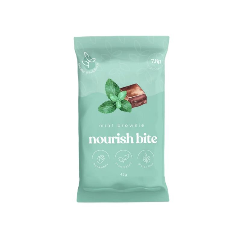 Made with rich cacao, refreshing peppermint, and a sprinkle of dark chocolate chips, this bite is designed to give you that perfect brownie texture while making your snack times a breeze.