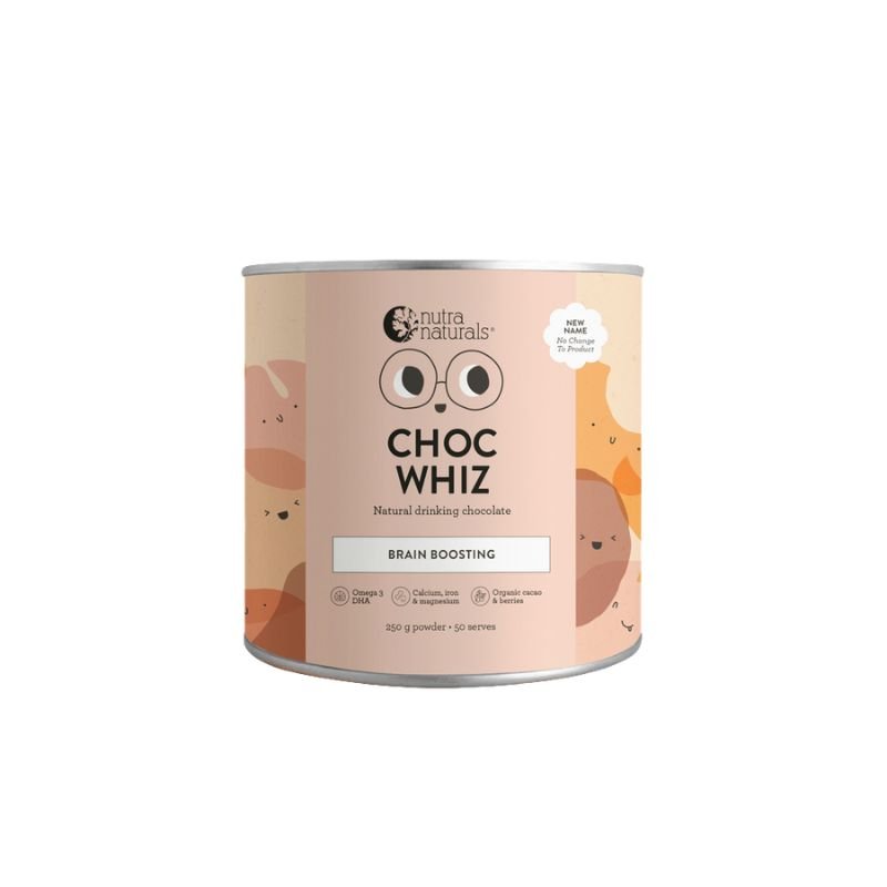 A yummy brain-boosting, gut-loving chocolate drink with organic cacao, super berries and choc chunks for smarty pants school fuel and sweet tooth satisfaction.
