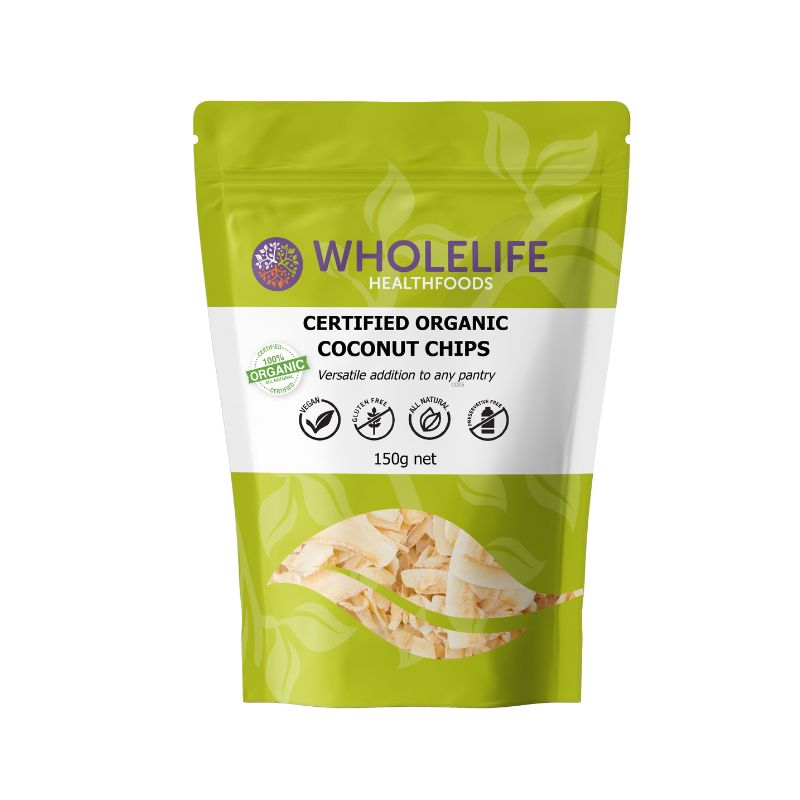 WholeLife Healthfoods Organic Coconut Chips are a fun coconutty alternative to the all-time favourite potato chips! Our coconut chips are certified organic, and absolutely delicious! They are rich in good fats, vitamin B, minerals and other nutrients, and are vegan, keto and celiac friendly! Enjoy as a yummy snack!