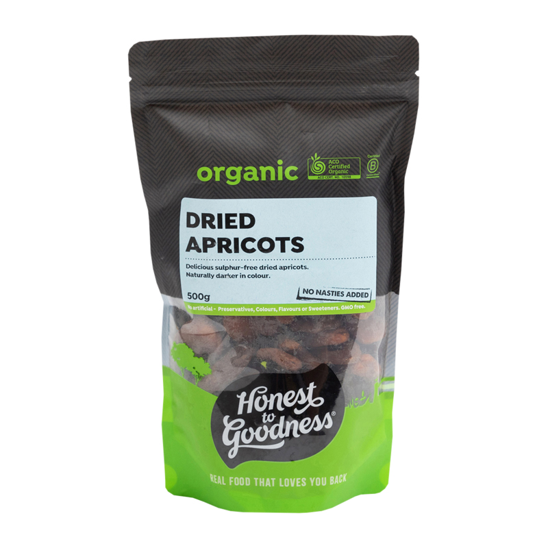 Honest to Goodness organic dried apricots are sun-dried without the use of sugar, artificial preservatives or sulphur dioxide (E220 or 220), which is why they are dark in colour and not bright orange!