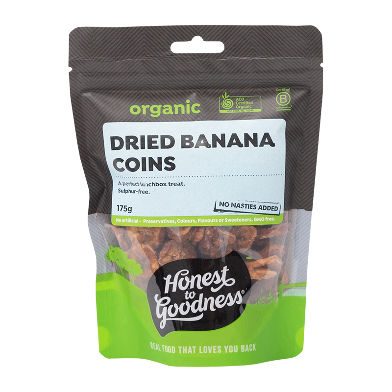 These Organic Dried Banana Coins are moist, chewy and very delicious. They are sulphur free, so they appear slightly darker in colour compared to conventional ones. A great sweet snack!