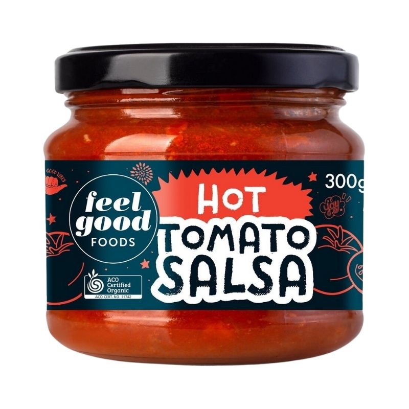 Feel Good Foods Hot Tomato Salsa is perfect traditional tomato salsa with a chilli kick! Great for dipping Feel Good corn chips or added to traditional Mexican dishes.