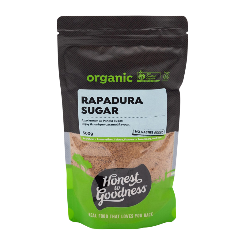 Organic Rapadura, also known as panela, is an unrefined and unbleached sugar popular for its unique caramel flavour. It is produced by simply evaporating the water from the organic sugar cane juice. Rapadura retains most of the naturally occurring vitamins and minerals, as unlike refined sugar, the nutrient dense molasses from the sugar cane is not removed during the pressing and drying process.