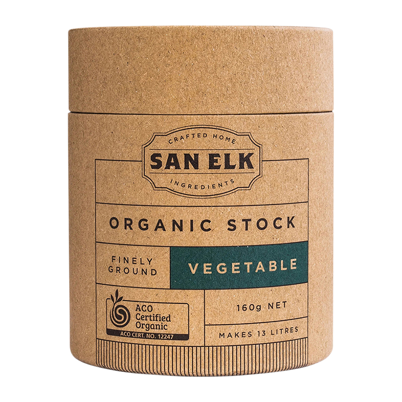 San Elk certified organic artisan stock is made in Australia, each batch is individually handcrafted using premium quality dehydrated and finely ground vegetables, herbs and spices blended together with other natural ingredients to create a nutritious, wholesome and flavoursome stock.