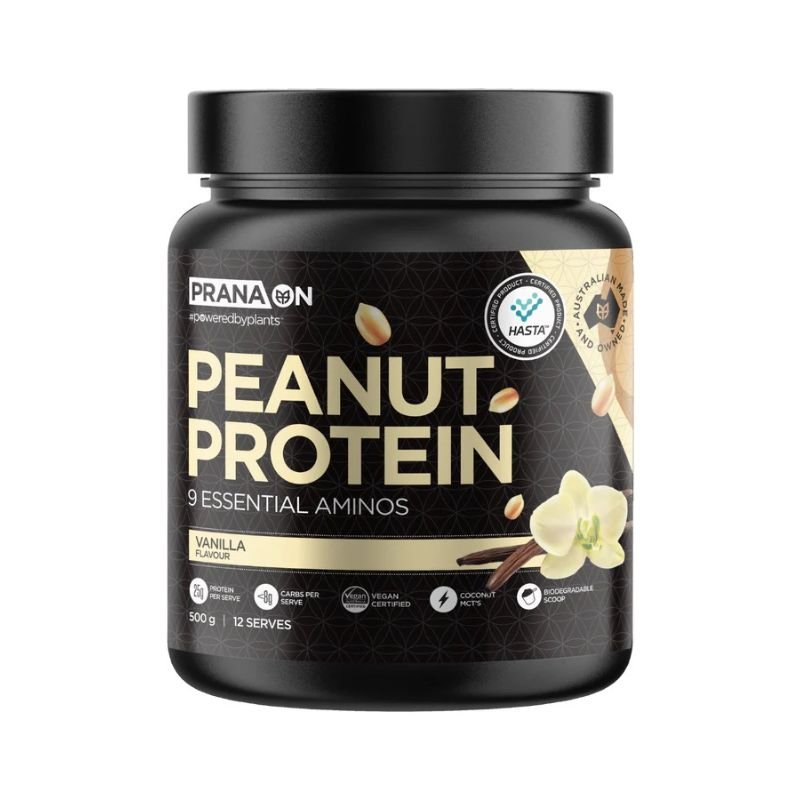 This protein blend combines four types of protein, branched-chain amino acids, probiotics, digestive enzymes, and medium-chain triglycerides (MCTs). Formulated for gut health, it supports peak performance, lean muscle growth, and optimal recovery. With 25g of protein per serving, just 8g of carbs, and a delicious peanut flavor, Prana On protein enhances your fitness and nutrition goals. This formula also contains essential MCTS from coconut oil to support energy.