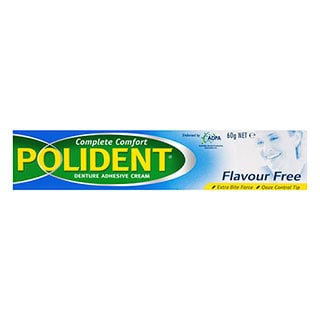 Polident Flavour Free Denture Adhesive Cream also offers the same strong hold, seal and comfort as Polident Fresh, but with the added benefit of being free of flavouring – for those who prefer a more natural taste. Polident denture adhesive creams hold the denture firmly in place whilst providing a gentle cushion for the gums.