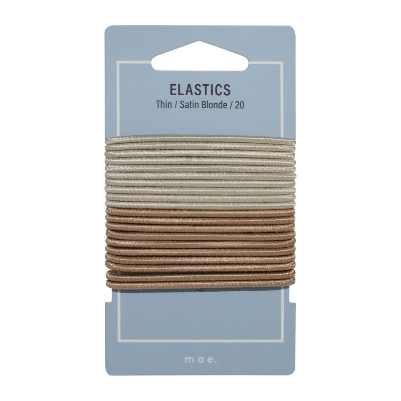 Pack of 20 Thin Elastics in two blonde tones designed to seamlessly blend into blonde hair.
