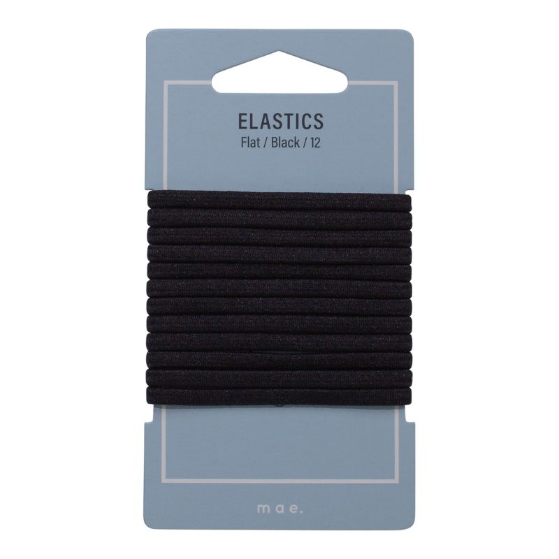 Pack of 12 Flat Black Elastics ideal for securing hair.