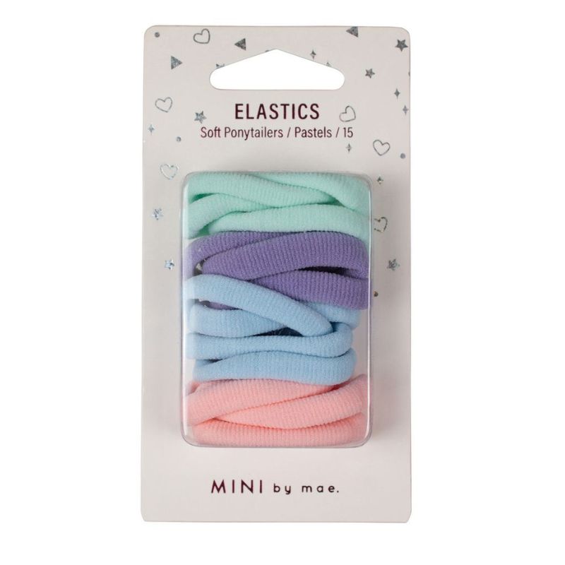 Pack of 15 Soft Ponytailers in assorted colours for securing hair.