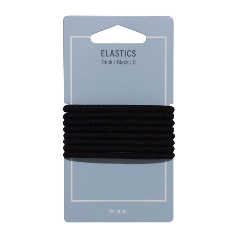 Pack of 8 Thick Black Elastics ideal for securing hair.