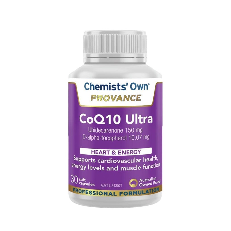 Chemists’ Own PROVANCE CoQ10 Ultra 150mg contains co-enzyme Q10 (CoQ10) and vitamin E which are both antioxidants that help protect against damage caused by free radicals. Co-enzyme Q10 helps to maintain energy levels and supports cardiovascular system health, muscle health and healthy muscle function.