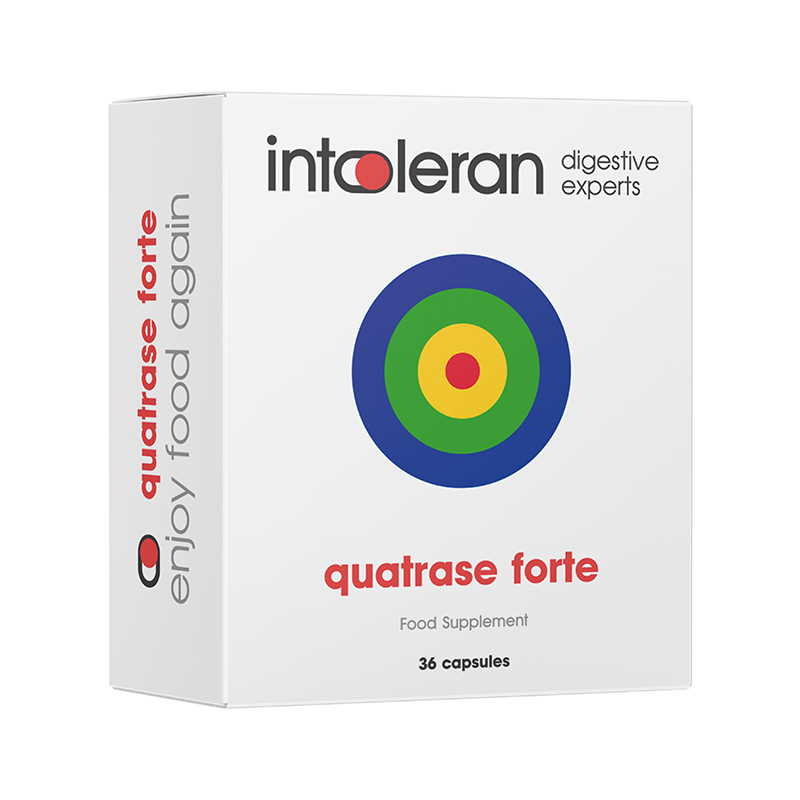 Quartrase Forte contains four enzymes for Lactose, Fructose, Sucrose, Fructan and Galactan intolerance which are part of the FODMAPs (Fermentable Oligosaccharides, Disaccharides, Monosaccharides and Polyols). FODMAPs are carbohydrates that are poorly digested and poorly absorbed in the small intestine. These FODMAP’s will then be fermented by bacteria in the colon. This can result in the production of gas and gastric discomfort in some individuals.