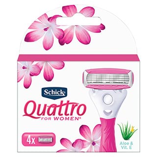 Schick Quattro is blades razor enriched with acai berry and Jajoba extracts for long lasting leg and under arm smoothness so you can skip a day or two. Waterproof battery operated trimmer for a neat, clean look and feel Rubber grip for comfort and a firm hold in the shower Adjustable rounded comb for various bikini area length settings