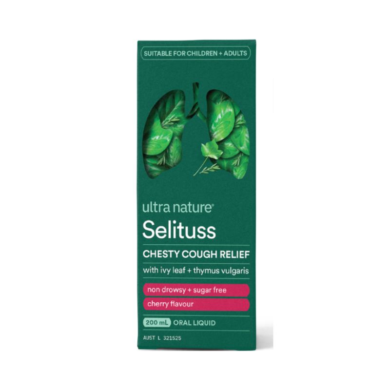 Ultra Nature Selituss Chesty Cough Relief helps reduce and relieve mild bronchial irritation and mucous congestion. Reduce and relieve mild swelling of the glands associated with common cold and the severity of symptoms of mild upper respiratory tract infections.