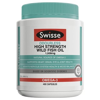 Swisse Ultiboost Odourless High Strength Wild Fish Oil contains a premium source of omega-3 beneficial for the heart, brain, joints and eye function as well as maintaining general health. It contains premium quality omega-3 fatty acids, EPA and DHA, sourced from fish that swim freely in the Pacific Ocean -‘sustainable free range fish’. They are completely free from’fishy’ taste or smell.