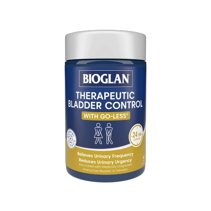 Designed to support bladder health, Bioglan’s Therapeutic Bladder Control with Go-Less® reduces urinary frequency day and night. It combines Pumpkin Seed Extract and Soy Isoflavones to help manage urinary frequency, helping you feel more in control.
