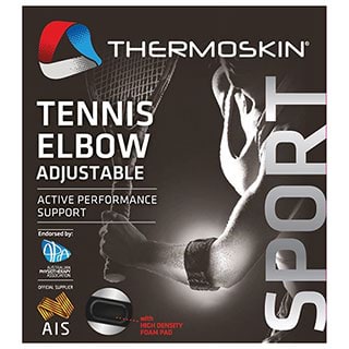 Thermoskin sports tennis elbow provides compression and support for weak or injured elbows during periods of increased activity. Ambidextrous wrap design with VR System provides greater adjustability for wearer compliance. HIGH DENSITY FOAM PAD: Tendon pad increases targeted localised compression . TRIOXON ADVANTAGE: Exclusive 3 dimensional lining that provides insulation and wicking of moisture via air circulation. VR SYSTEM: Provides greater adjustability for wearer compliance. S-STRETCH CORE: Superlite, softer and greater stretch for all round support and compression.