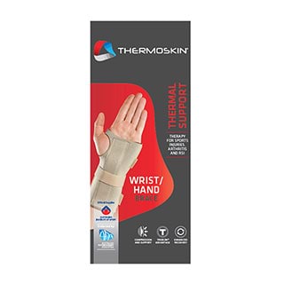 Position the product so that the metal splint is on the inside of the wrist. The hand section of the splint should be placed in the mid-lower part of the palm. Wrap the Velcro straps around the forearm and secure, then wrap the locking strap around the splint and secure.
