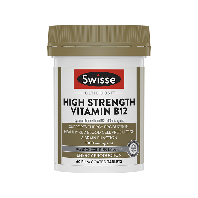 Vitalise your day with Swisse Ultiboost High Strength Vitamin B12. Each tablet contains 1,000 micrograms of vitamin B12, which is important for assisting healthy red blood cell production and maintaining energy production and vitality. This supplement goes above and beyond as it supports cognitive function and brain health too. Maintain your immune and nervous system health with this vegan-friendly formula.
