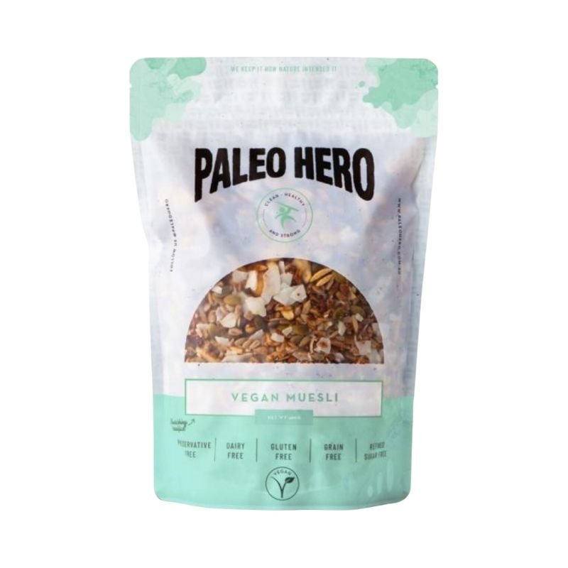 Paleo Hero have combined a signature blend of nutrient dense nuts and seeds with their secret baking method to create a delicious gluten free and vegan muesli the whole family will benefit from. Vegan Muesli is a great source of protein, antioxidants and EFA’s making it a much healthier cereal compared to most highly processed, sugar filled cereals in supermarkets.