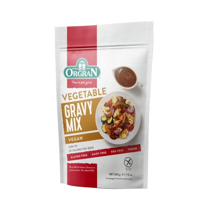 Orgran Gravy Mix is a premium, all-vegetable product that is naturally wheat and gluten-free. Free from added yeast extracts, cane sugar, dairy, and MSG, this flavorful sauce enhances any roast. It also serves as an excellent thickener and flavor booster for soups and casseroles, adding a delicious, traditional taste.