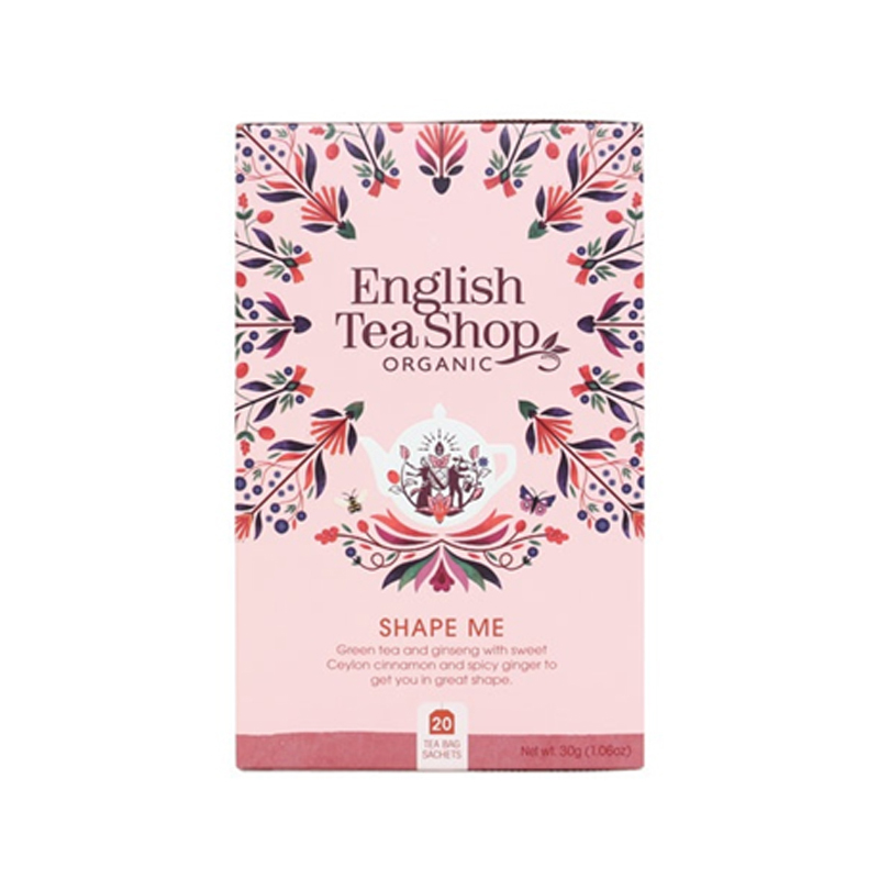 English Tea Shop Wellness Tea, Shape Me is made from an energising blend of herbs and spices. The tea is vegan friendly and contains organic green tea, hibiscus, sea buckthorn and rosehip. The caffeine-free blend is designed to provide you with an energy boost to help you get into shape.