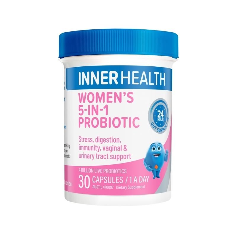 Inner Health Women’s 5-in-1 Probiotic 30 Capsules are a multi-benefit formula designed specifically for women. It supports healthy vaginal flora, maintains hormone balance, promotes digestive health, and helps maintain a healthy urinary tract. A convenient daily supplement, it is ideal for women seeking comprehensive internal support for digestive and reproductive wellness.